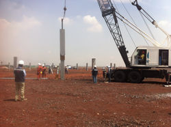 Los pilotes son prefabricados en una sola pieza y pre-tensados. Su altura es de 25 metros. La anchura y se define en función de la profundidad a la que se va a hincar, por lo que los utilizados en la terminal tienen 50 cm de ancho por 50 cm de largo, y en la torre de control 40 por 40 cm, con una resistencia de entre 30 y 40 toneladas por metro cuadrado.
